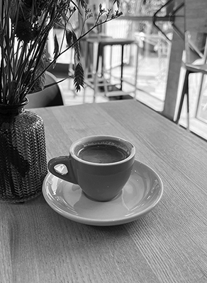 The ‘children’ have left, her partner has died. The days are much the same and many hours are spent in cafes. A barista coffee, a treat, and usually a pleasure shared, is taken alone. Her daily café solo, enjoyed wherever she is, close to home or further away.